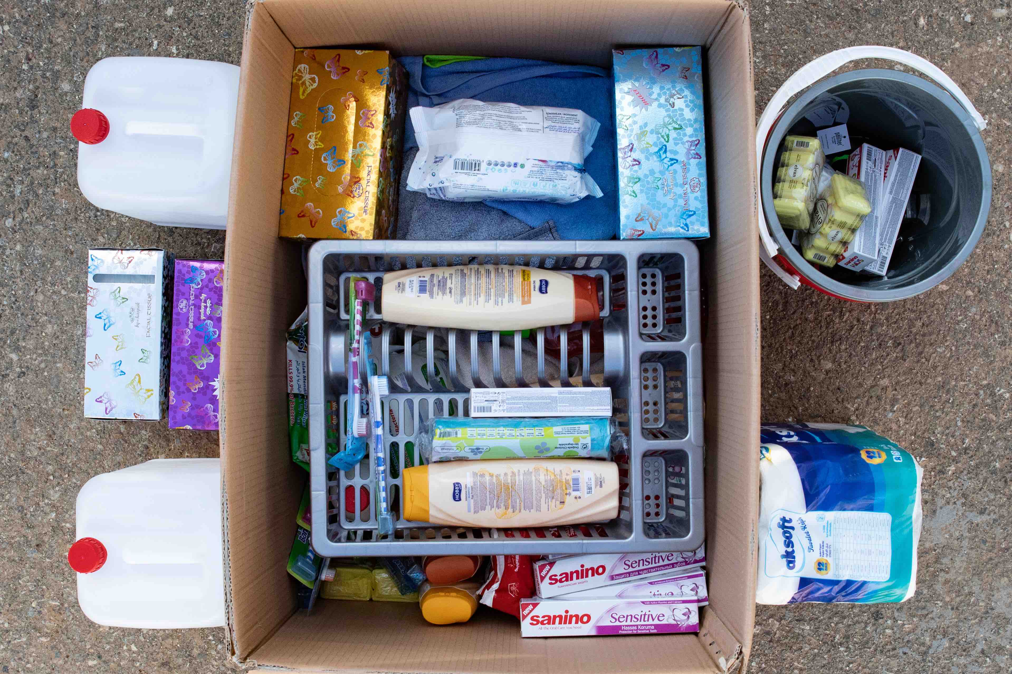 - Entrega de kits de higiene y alimentos